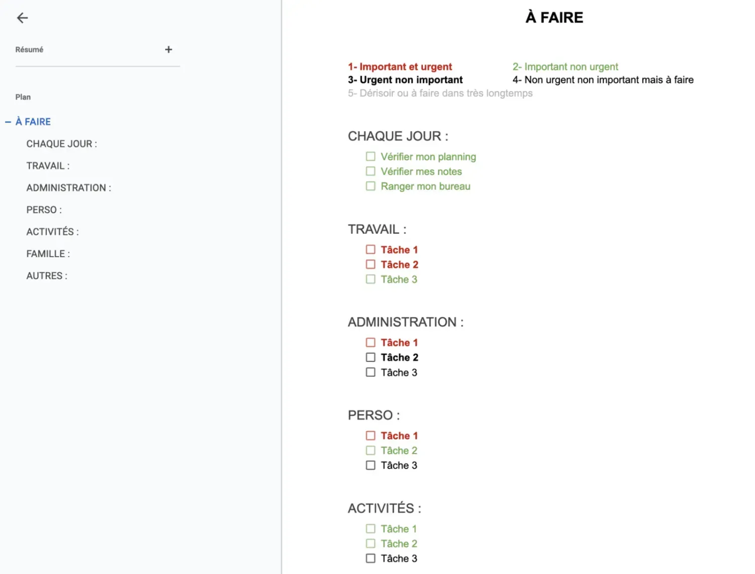 Exemple d'une To-Do List faite sur Google Docs et mise dans les onglets favoris (donc toujours accessible facilement depuis tous les appareils !)
