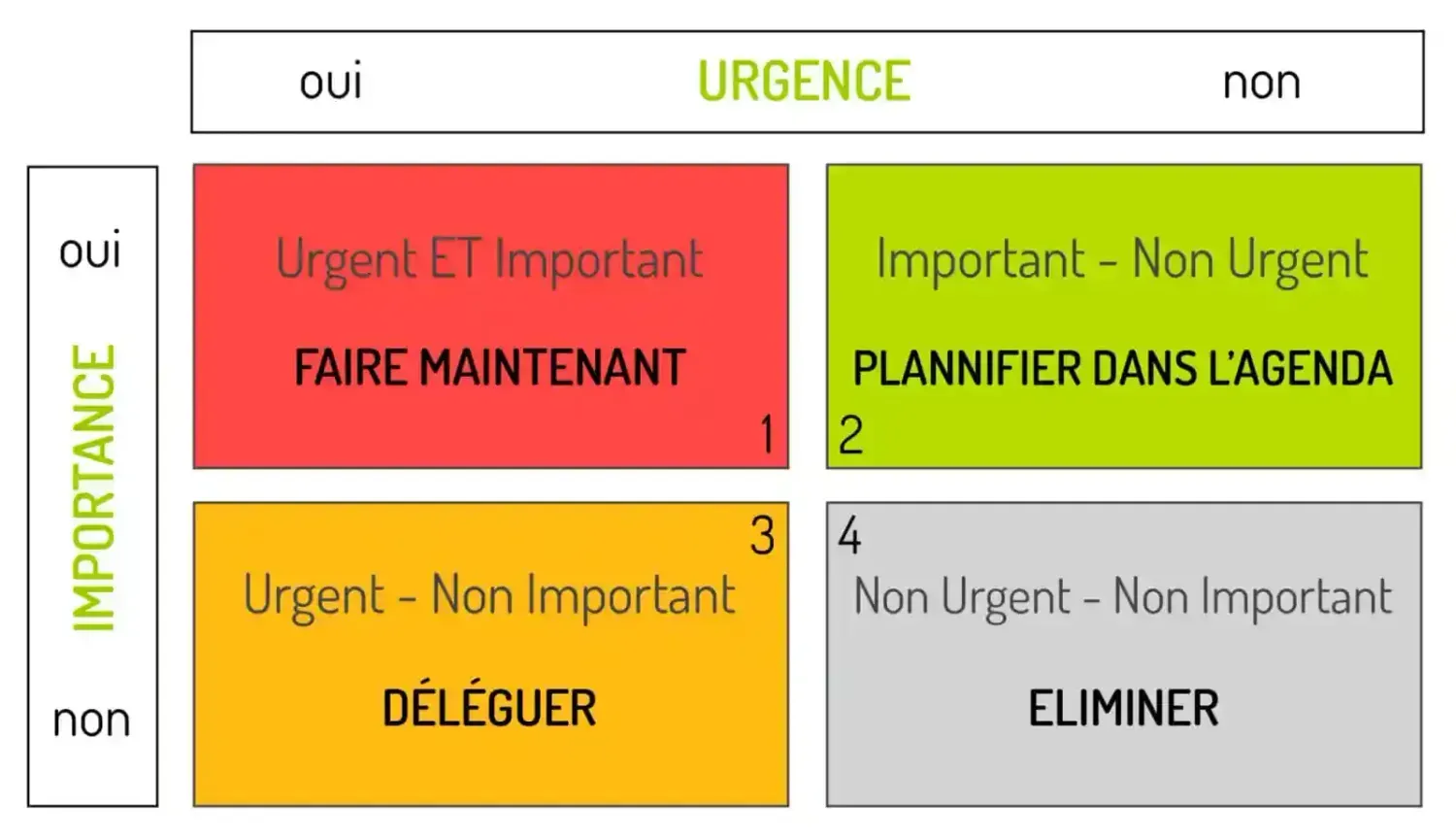 En haut à droite : Urgent MAIS NON Important